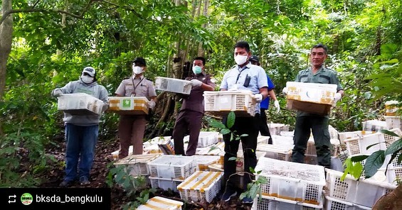 FLIGHT assisted the team to release all of the birds, some of them including 680 Tits, 1480 Prinias, 1140 Yellow-vented Bulbuls, etc at the Way Pisang Forest Management Unit (KPH) Area, Lampung.